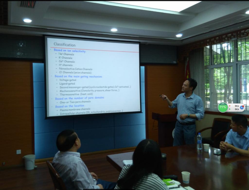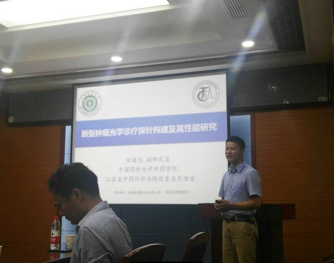 2017年5月23日,受药学院邀请,中国药科大学曹征宇教授、田蒋为副研究员来我院进行了题为“Ion Channels-Pathological Effects and Drug Discovery”、“新型肿瘤光学诊疗探针构建及其性能研究”的学术报告。报告由药学院中药系主任阮汉利教授主持,药学院游慧娟教授、曾静副教授等老师和各年级研究生参加了交流。
