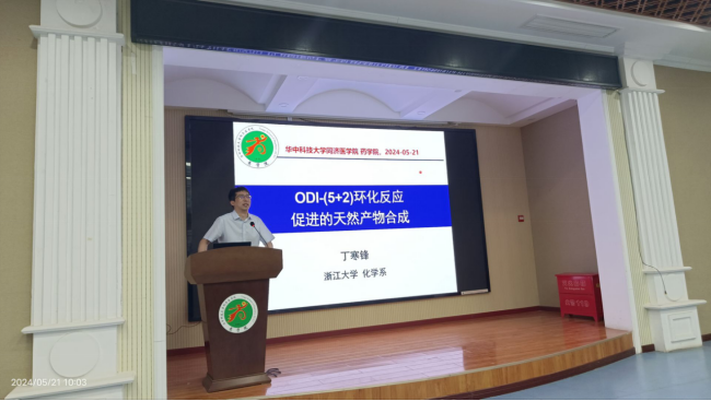 2024年5月21日上午,浙江大学丁寒锋教授应药学院姚广民教授邀请在药学院三号楼五楼会议室为药学院师生做了题为“ODI–(5+2)化反应促进的天然产物合成”的精彩报告。报告会由万谦教授主持,药学院副院长张志平教授、副院长曾静教授、杨旸教授等50余名师生参加。