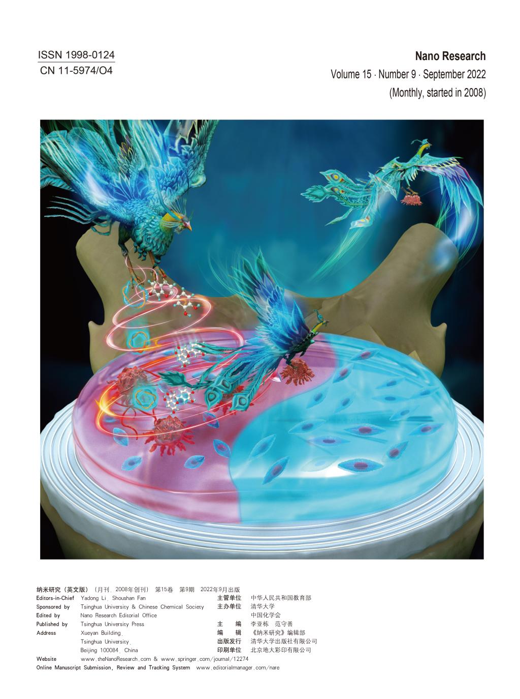 中国“领军期刊”《纳米研究》英文刊《Nano Research》第九期封底刊登谭松巍副教授团队的最新研究成果《Co-delivery of luteolin and TGF-β1 plasmids with ROS-responsive virus-inspired nanoparticles for microenvironment regulation and chemo-gene therapy of intervertebral disc degeneration》。