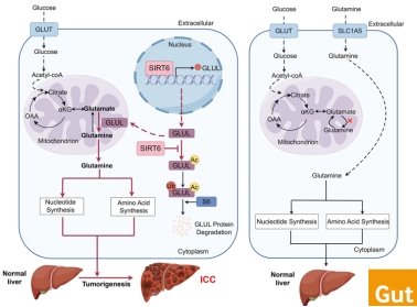 这项研究揭示了SIRT6通过上调GLUL,驱动谷氨酰胺合成与氮代谢重编程,促进核苷酸和蛋白质合成,为肝内胆管癌提供新的靶向治疗策略,并有助于针对谷氨酰胺代谢途径的药物开发。