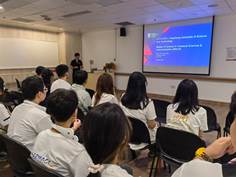 访学团最后前往药学系进行参观交流。药学系主任Giorgia PASTORIN教授、CHUI Wai Keung教授、YAU Wai Ping教授介绍了药学系的整体情况、深入讲解了人才培养的相关方案和考试情况,以及新加坡的医药管理体系。CHUI教授表示:“药剂师就是医生与病人之间的桥梁,一定要做好二者之间的沟通,为未来的学习与研究奠定坚实基础。”21级宋蔚然同学谈了自己在新加坡的游学感受以及自己未来的努力方向,21级杨磊同学向大家介绍了华中科技大学和同济医学院的基础概况,随后双方进行互动交流。座谈后,同学们分为两组重点参观了药学系药物化学、微生物学等基础实验室及科研实验室。严谨的科研氛围中,同学们感受到药学的魅力与责任,备受鼓舞。