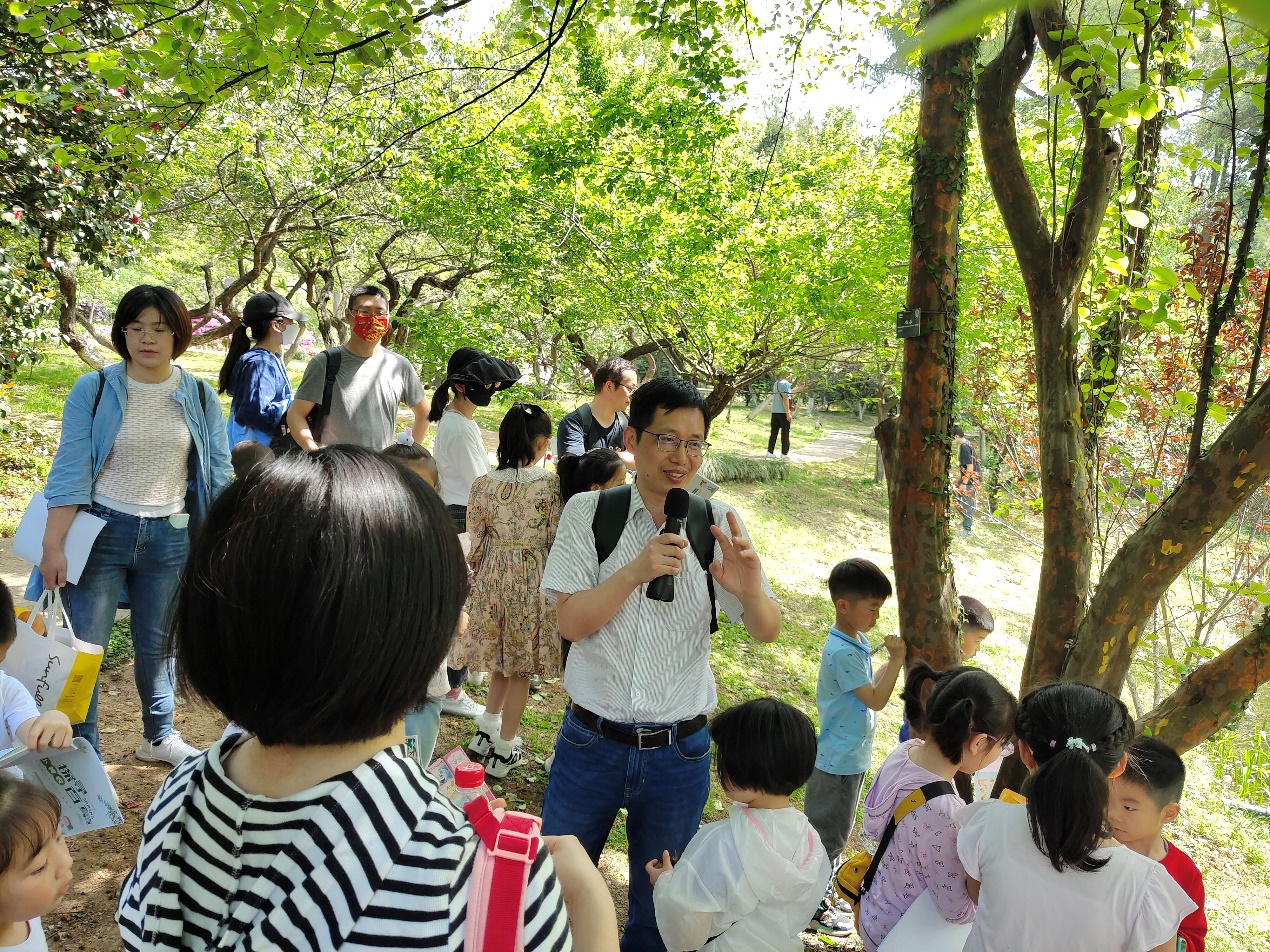 怎么区分牡丹和芍药?琼花外围花是什么花?谚语“谷雨三朝看牡丹”中的谷雨是哪天?世界上最大的草本植物是什么?在前三个景点的讲解中,大朋友小朋友们全神贯注、积极抢答,近距离观赏了牡丹、昙花、剑叶龙血树、杜鹃等众多植物,获得了满满的植物学知识。