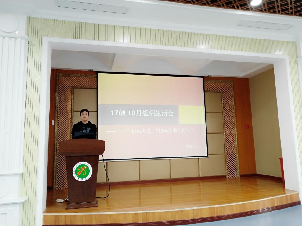 10月19日下午,药学院2017级研究生党支部一起观看了《平语近人》第八集:腹有诗书气自华。本集从三个层面解读习近平总书记关于“劝学”的思想,从“学如弓弩,才如箭镞”这一典故切入,以“学习是人生成长之梯”为重点,阐发“为何学”的问题。