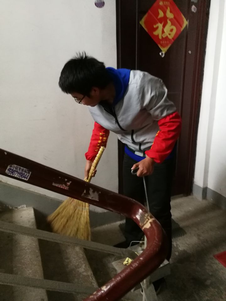 中午12时30分,同学们下课后匆匆赶到同济医学院社区,在社区老师的安排下,分组对社区内的居民楼楼道进行打扫。同学们在每一个楼道内忙碌着,经过一个多小时的努力,楼道卫生焕然一新,路过的社区居民对我院开展的学雷锋活动交口称赞。