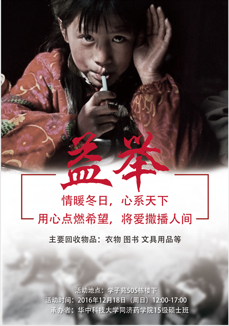 衣旧暖人心,当你打开衣柜,是否有一些因款式欠佳、颜色不再鲜亮的衣服被置于箱底不再穿着,却又弃之不舍?是否闲置有款式型号过时但又能正常使用的手机、学习机等电子产品?是否心血来潮购置某些运动器材后又将其遗忘在角落里?现在,它们终于有了用武之地。来吧,用这些物资去温暖那寒风中一个个颤抖着的弱小身影!区区旧物,仁爱不尽!或许你捐出的一件衣服,不足以让一户贫困人家,摆脱贫困的艰辛与无奈,但你弥足珍贵的爱心,一定能令那遥远身陷困境的一家人,感受到一个素不相识的人带来的温暖与祝福,一定能激励我们更努力地凝聚学校及社会上无数爱心人士的力量,共同构建一个爱心家园!赠人玫瑰,手留余香。希望大家都行动起来,尽我们的绵薄之力,帮到一些我们能帮到的人。帮助别人快乐自己,也是一种美德!