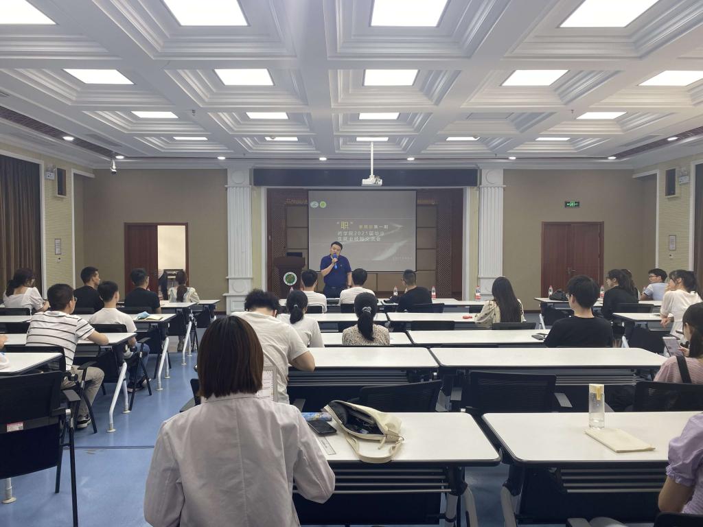 为扎实推进学校关于“学党史、悟思想、办实事、开新局”的工作部署,给研究生提供优质精准的就业服务,6月5日,药学院在学院三号楼五楼举办2021届毕业生就业经验交流会。此次会议邀请涉及高校、医院、选调、企业、升学5个方面的7名优秀毕业生进行经验交流。特邀药学院党委副书记周正航、研究生辅导员赵红艳老师参加会议。药学院2022届毕业生参会,蔡沅璇同学主持本次会议。