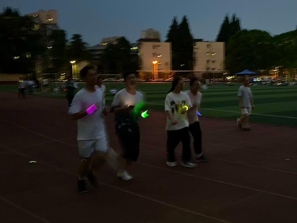 本次第二阶段活动吸引了学院30名同学参与,活动开始前,参与同学们选择自己心仪的荧光手环,夜跑时每一位参与同学都用荧光点缀,缤纷涌动的五彩荧光划破田径场的黑夜,恰如点点荧光的萤火虫,点亮森林大学,留下青春足迹。无关快慢,无关终点,在简单的摆臂和跨步中尽情享受跑步本身的乐趣。这一刻,同学们卸下一天的疲惫,用最激扬的奔跑释放压力,点亮夜空。活动结束后,主办方为参与同学送上了70周年校庆周边,鼓励同学们坚持运动,继续奔跑。