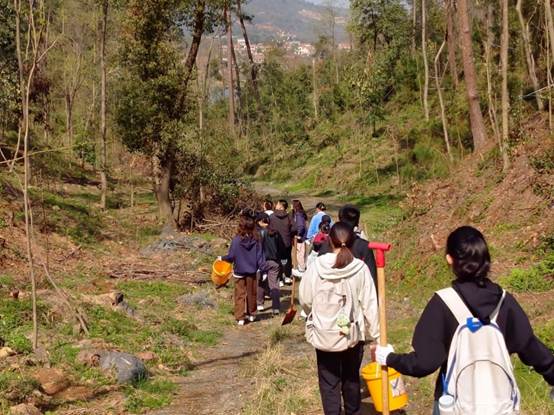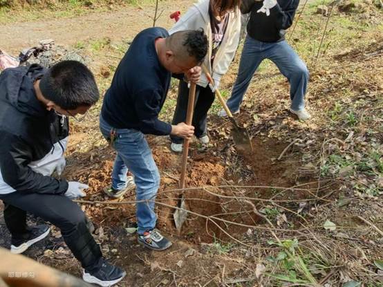 期间,高叔叔也在同学旁边协助大家,并不时提醒大家注意脚下安全。经过一下午辛勤劳动,大家齐心协力一共种了20多株树苗。最后,同学们进行合影留念。