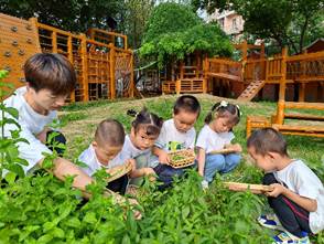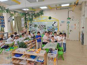 6月17日下午,老师和支部成员们带着中三班的小朋友们认识了具有清热解毒功效的金银花。