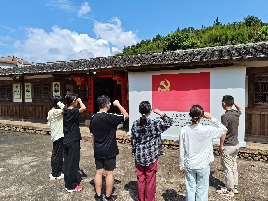 之后,在红色精神指引下,在广场的党旗下,队伍中党员同志们在党旗前庄严宣誓,重温入党誓词,传承红色基因,赓续红色血脉。