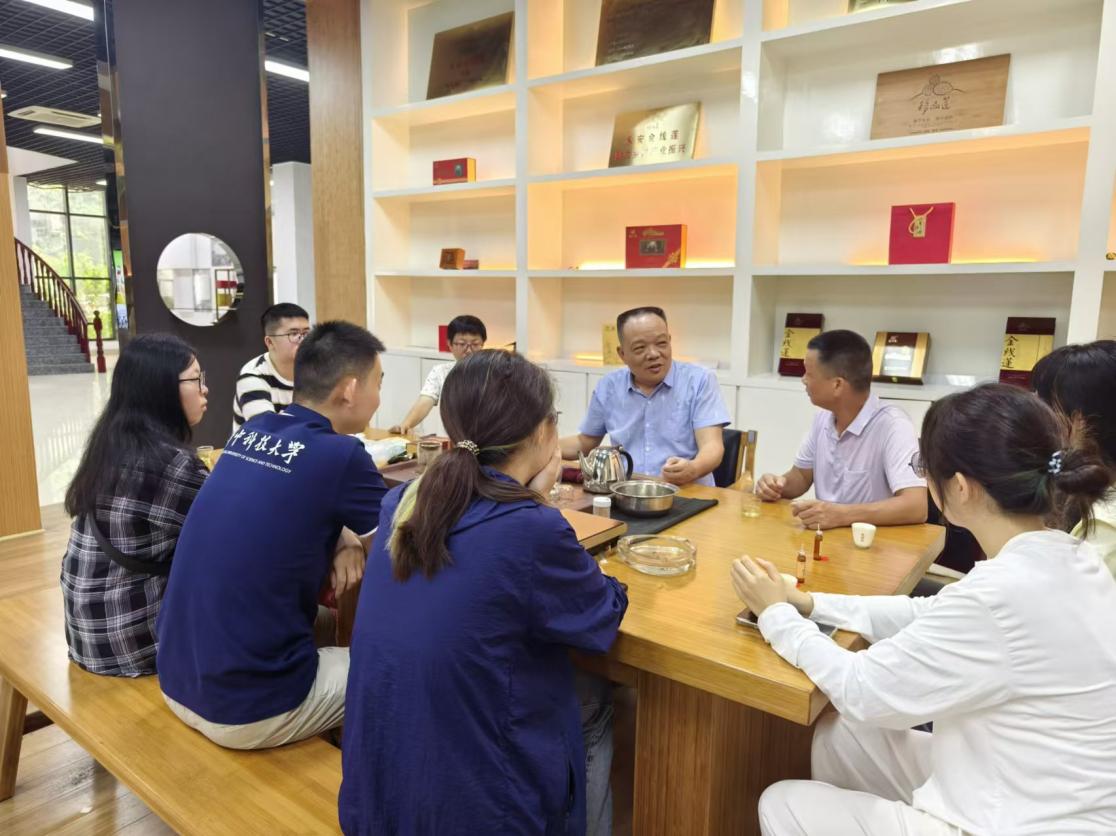 8月12日上午,实践队走访金线莲产业协会,与协会会长沈绍榕、协会秘书长冯锦浩针对金线莲产业建设进行了交流。沈会长向实践队介绍了金线莲这一珍贵植物的多重药用价值,并阐述了金线莲从品种选优、母种获取、精心培育到最终产品开发的完整过程,每一个环节都凝聚着科研人员的心血与智慧。在交流中,实践队还了解到永安市从2016年开始,历经近七年的不懈努力,在2022年成功推动制定了首个金线莲相关的省级食品安全地方标准,为行业的规范化、标准化发展树立了标杆。