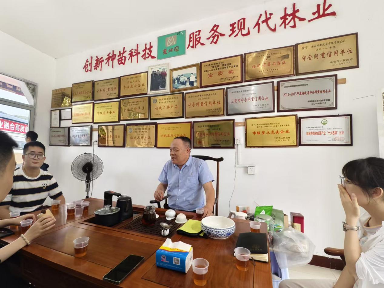下午,实践队来到永安市林业局,就永安市作为林下经济示范县,特别是金线莲产业的发展现状与未来规划与永安市林业局林竹产业发展中心主任刘永川、高级工程师林敏水进行了深入交流。刘主任介绍到,永安市积极探索林下经济的新模式,将金线莲产业作为重点发展对象,打造“移山莲”品牌,积极推广“公司+农户”的合作模式,通过公司带动农户参与金线莲的种植和销售,实现共赢发展。同时,政府还出台了一系列扶持政策来鼓励和支持金线莲产业的发展。
