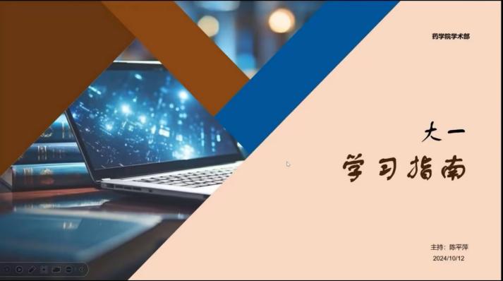 为了使同学们了解更多大学学习生活的相关内容,助力未来更好的发展,药学院团委学生会前期收集大一新生对于学习各方面的困惑和问题,于2024年10月12日在线上举办了大一新生学习指南会。会议由24级药学一班陈平萍同学主持。