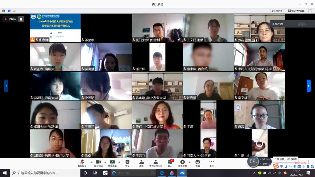 2020年7月13日至14日,药学院成功举办了2020年全国优秀大学生暑期学术夏令营活动。此次夏令营旨在为全国药学相关专业的优秀大学生提供学术交流的机会,吸引了408名来自全国各地121所高校的优秀大学生踊跃报名,经过综合评定和筛选,来自吉林大学、大连理工大学、中国海洋大学、中国药科大学等全国50多所高校的83名优秀大学生欢聚在云端,聆听报告、交流学术、感受着我校浓厚的科研与文化气息。受疫情的影响,此次活动采取线上方式举行。