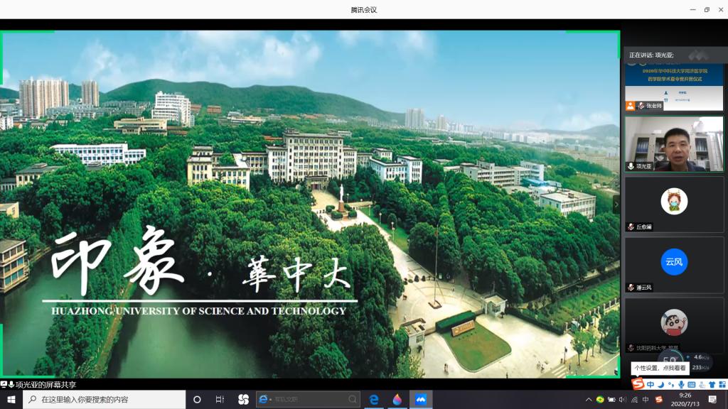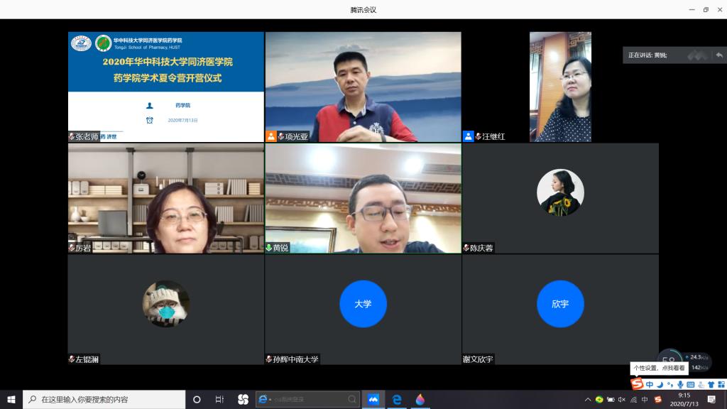 7月13日上午,夏令营在“云端”正式拉开序幕。开营仪式由药学院副院长项光亚主持,党委书记厉岩、副院长黄锐出席了此次活动。厉岩首先代表学院对营员们表示热烈的欢迎,介绍了在疫情期间华中大人所作出的努力,引领营员投身药学研究事业。随后,黄锐结合营员们关心的问题介绍了学院的科研情况和学院的发展情景,激励营员们追求卓越,取得更大的研究成果。最后,项光亚向各位营员介绍了我校和我院的整体情况,并对我院2020年接收免试研究生的政策进行了解读。
