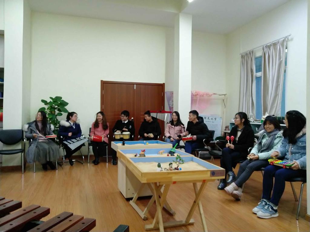 李春方老师给大家带来了一堂别开生面的心理辅导课。“自我介绍小游戏”拉开了本课堂的序幕,自我介绍加特定动作的组合,促进了团体成员在短时间内通过身体和语言的交流达到放松状态。接下来“无声的魔术泥礼物”使整个体验课堂充满幽默,也展示着大家对美好事物的追求和渴望。在李老师的专业引导下,“抛球谈感受小游戏”揭示了成员们“不懂如何表达自我心理感受,难以向他人提出需求”的普遍问题。紧接着,李老师指引成员以最舒服的状态坐下,给成员朗诵了一首“雪花赞”,让大家体会耐心深处的专注与放松,这种方式得到师生一致好评。此外,李老师指引大家“挑选沙具”,并说出自己选择的原因,大家的记忆盒子或者心门就在这时都统统打开。“组合沙具说故事”让大家脑洞大开,更有团队讲了“喜迎改革开放四十年,庆祝超人营救叮当猫”的精彩故事。最后,在李老师的指引下,“挑选乐器即兴演奏”不仅满足了大家对满屋各种乐器的好奇心,也让大家体会到心与心有效交流的方式多样化。课堂环节形式多样,生动有趣,参与同学赞不绝口。