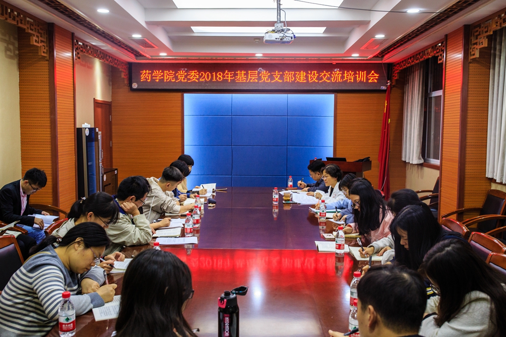 2018年11月1日晚上6:30,药学院2018年基层党支部建设交流培训会在学院二号楼一楼会议室召开。药学院党委书记厉岩,党委副书记周正航,党委办公室主任何炜玮,学生办公室主任李堃、分团委书记张润博、本科生辅导员李跃春、研究生辅导员赵红艳、全院各支部书记及支部委员参加会议。