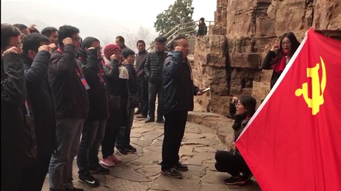 在为期3天的党员学习生活中,老师们先后观看学习了以修建红旗渠为主题的话剧、纪录片、主题讲座,了解红旗渠精神的主要内涵。在红旗渠干部学院的有序组织下,完成了现场教学部分---观摩红旗渠纪念馆,展馆通过2000多件珍贵文物、影像资料真实还原了红旗渠修建的历史背景与整个过程。河南林县人民在艰苦的外部环境下,难而不惧,自强不已,在县委书记杨贵同志的带领下,历经10年寒暑引漳入林,最终修成了这条人工天河,林县人民世代缺水的历史命运从此改变。随后的现场参观考察中,沿途观摩到“老炮眼”、“神工铺”等当年修渠痕迹以及“凌空除险”、“铁姑娘打钎”等当年修渠场景,无不为当年能工巧匠们不畏艰险、劈开太行山的精神所动容。经过近2小时山路,最终抵达红旗渠的咽喉工程段“青年洞”,在学院副书记周正航的带领下,党员重温入党誓词,圆满结束了为期3天的党员学习生活。