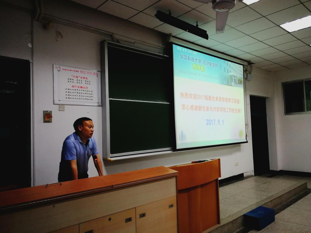为帮助药学院2017级新生更好的度过大学的第一学年,学校任命了校医院药剂科的薛承斌主任及杨睿老师作为我院新生教师班主任。薛主任为大家介绍了教师班主任的主要职责,薛主任承诺在未来的一年中为大家做好服务工作并且保证药学院的同学能够及时了解、掌握校医院最新的医疗政策,为同学们就医提供最便捷的服务。