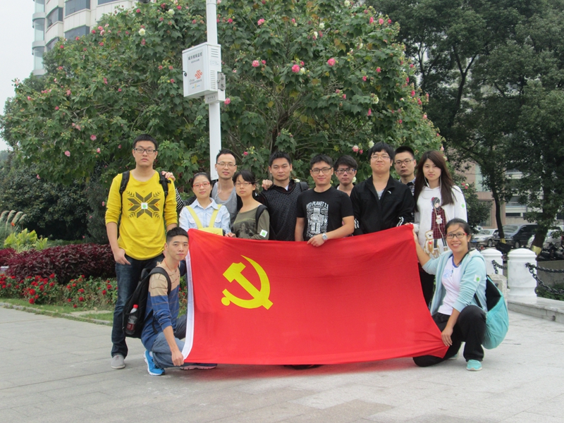 10月14日早上7点,在雾气朦胧中药学院11级本科生党支部一行13人准时集合,戴上院徽,举起党旗,雄赳赳气昂昂向东湖进发。
