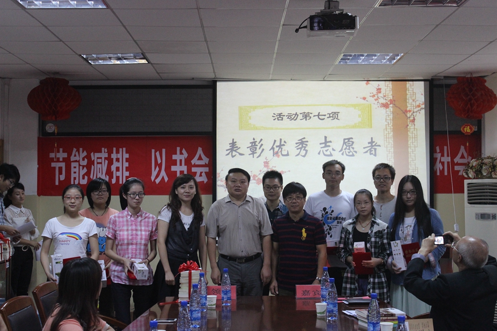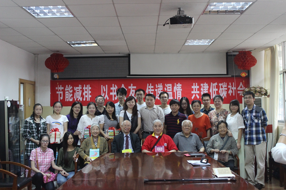 2014年9月20号上午,同济药学院和同济医学院社区共同举办的以“节能减排 以书会友 传递温情 共建低碳社会”为主题的互赠活动在药学院2号楼会议室举行。到场的有同济医学院社区党委书记朱小松、党委副书记杨丽丹、同济医学院药学院党总支副书记周正航、分团委书记夏述旭、社区心理中心的退休教授爷爷奶奶们以及药学院优秀志愿者们。现场气氛活跃,会议室内流动着满满的温情。
