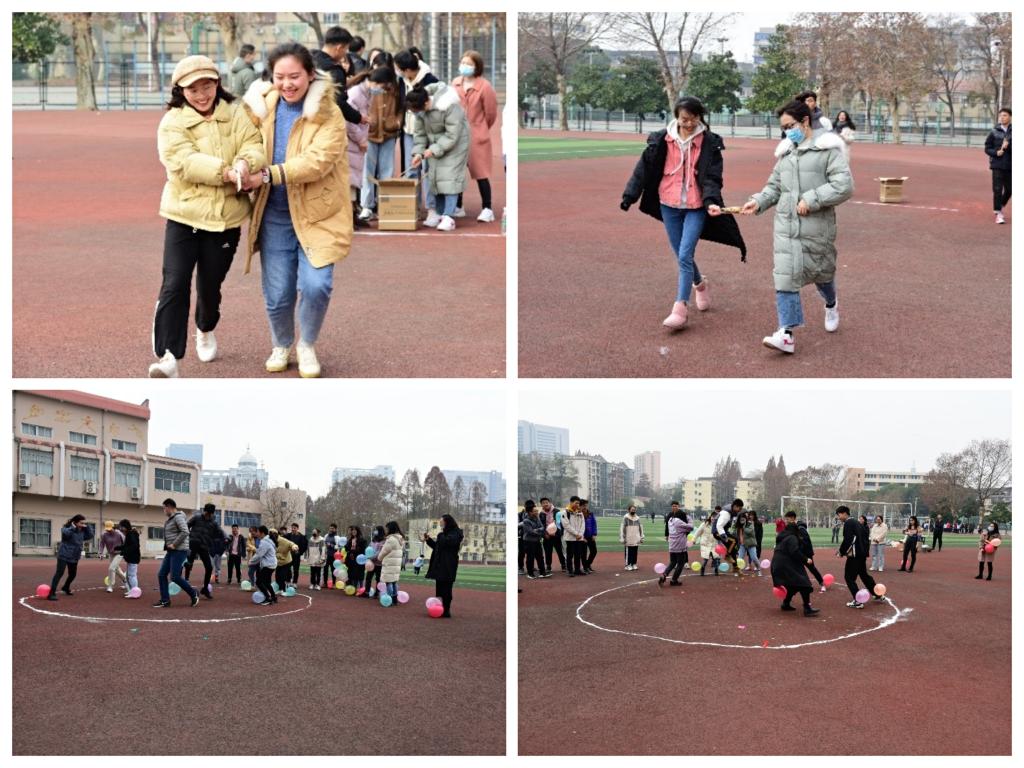 下午两点整,趣味运动会正式开始。首先进行的是欢乐多多的夹零食比赛,同学们两两组队,配合默契,用筷子配合着夹起零食向终点进发,享受运动带来的快乐;紧接着开展了紧张刺激的踩气球大作战,同学们脚绑五彩斑斓的气球,7-8人一组在划定界限中“混战”,同学们斗志昂扬,你追我赶,精彩纷呈,操场上不时爆发出同学们的欢呼声与笑声。