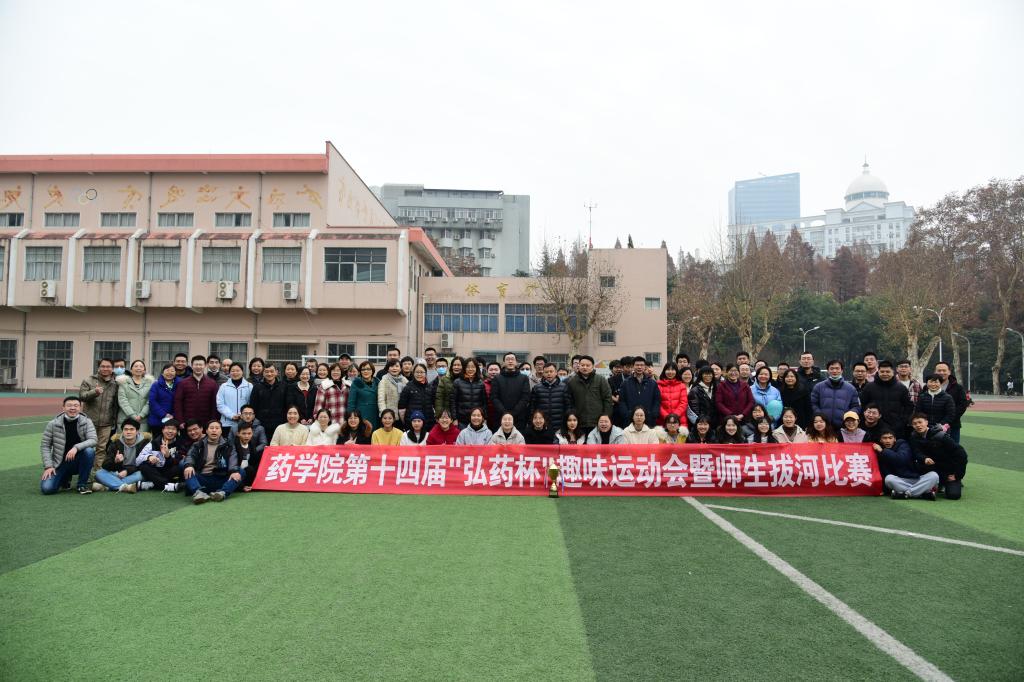 为促进青年身心健康发展,缓解考试周压力,鼓励学生“走下网络,走出宿舍,走向操场”,同时加强学院师生交流。12月25日下午,药学院第十四届“弘药杯”趣味运动会暨师生拔河比赛在医学院操场圆满举办,院长张勇慧、党委副书记周正航、副院长项光亚、黄锐亲临现场,与学院各系室教师、本科生以及研究生共百余人一同参加了本次活动。