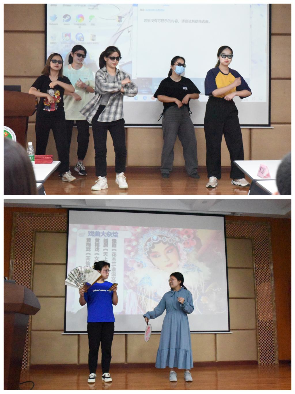 初赛过后,共有6个宿舍进入了4月24日的决赛,本次决赛邀请到学院各年级辅导员和部分班主任老师担任评委嘉宾。第一个环节是宿舍风采展示,每个参赛宿舍都为自己的队伍起了颇具特点的队名,并依次进行了限时5分钟的宿舍风采展示:一起贴春联的“啊对对队”;表演戏曲的“疯狂618队”;一起运动一起自习的“一流干饭,二流撸铁队”;为大家介绍寝室好物的“超能陆战队”;带给我们欢乐舞蹈的“碱基不配队”;喜爱歌唱的“乱世佳人队”。每个宿舍都展现出了属于自己的缤纷宿舍生活与独特风采。