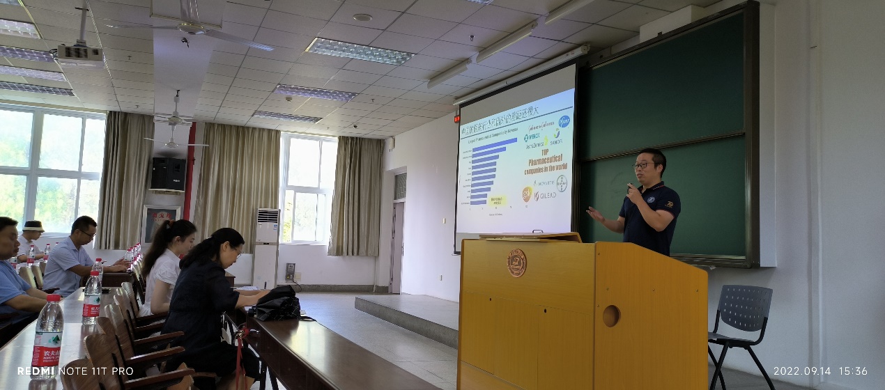 首先,朱虎成简要回顾了学校、学院的历史沿革。指出学院在五十余年的发展历程中,始终秉承“明德求真,弘药济世”的院训,把“培养具有国际视野、家国情怀,具备科学家潜质的新药创制领军人才”当作发展的初心与使命。并对药学院的师资力量、人才培养、科学研究、国际交流以及社会服务等现状作了较全面的介绍,对研究生新生寄予了殷切希望。