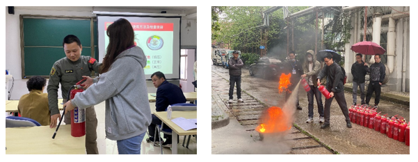 培训以讲解与实际操作相结合的方式开展,详细介绍了火灾自救逃生知识和烟感器工作原理以及如何正确使用灭火器、防烟面罩、灭火毯等消防器材。培训结束后,在消防人员的组织协调下,学院师生先后进行了灭火演练操作,掌握了如何应对初期火灾扑救技能。