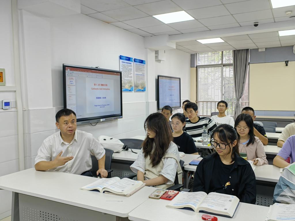 2023年8月28日上午,药学院学生迎来了新学期的开学第一天。院长张勇慧深入课堂,听取尚先梅老师为2022级本硕博班讲授的有机化学,并与同学们亲切交流。