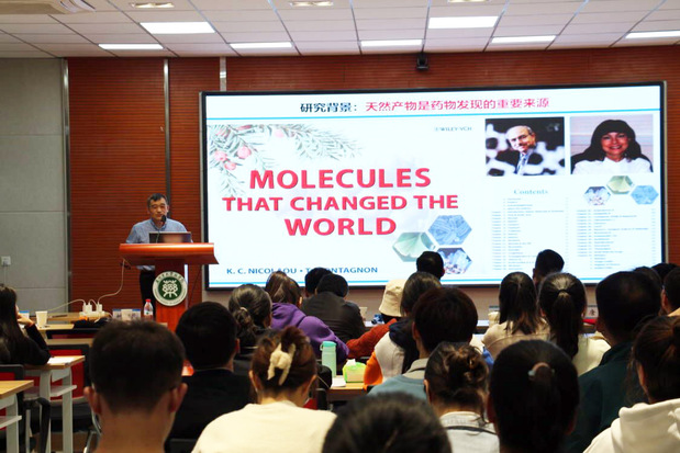 我院黄昆教授和石河子大学药学院韩博教授就两院学科方向和特色、学科研究等方面的现状进行了交流。我院姚广民教授以“杜鹃花科植物药源分子的发现与研究”为题开展了精彩的学术讲座。