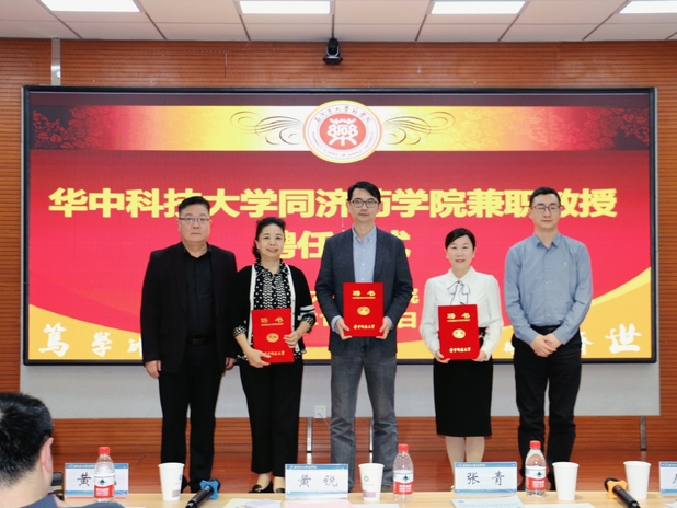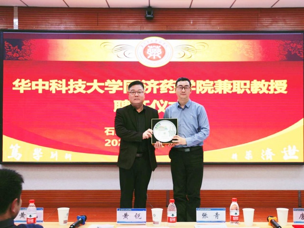 会上举行了隆重的聘任仪式,我院聘任石河子大学唐辉教授、韩博教授和王新春教授为华中科技大学医学院药学院兼职教授。