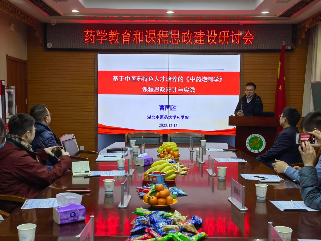曹国胜以“基于中医药特色人才培养的《中药炮制学》课程思政设计与实践”为题,从课程的教学分析、教学设计及创新成果等方面详细介绍了湖北中医药大学药学院《中药炮制课程》课程思政的建设情况。