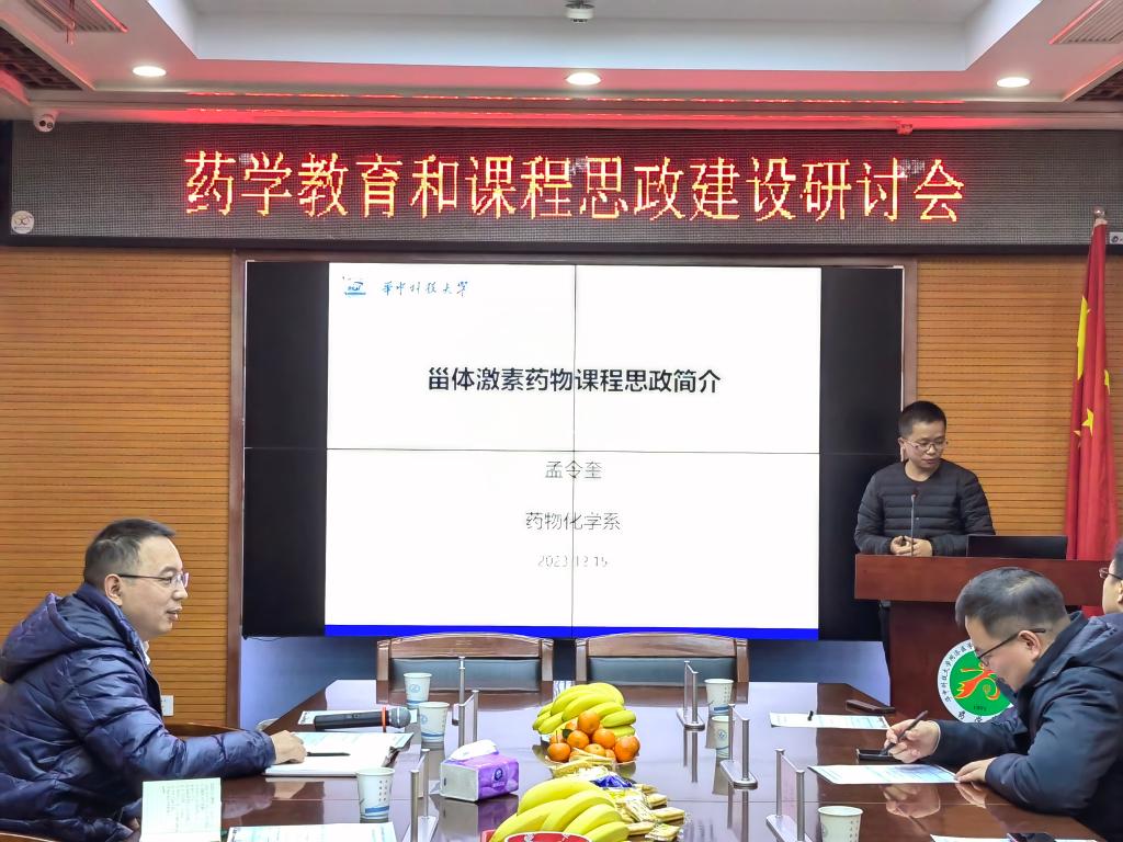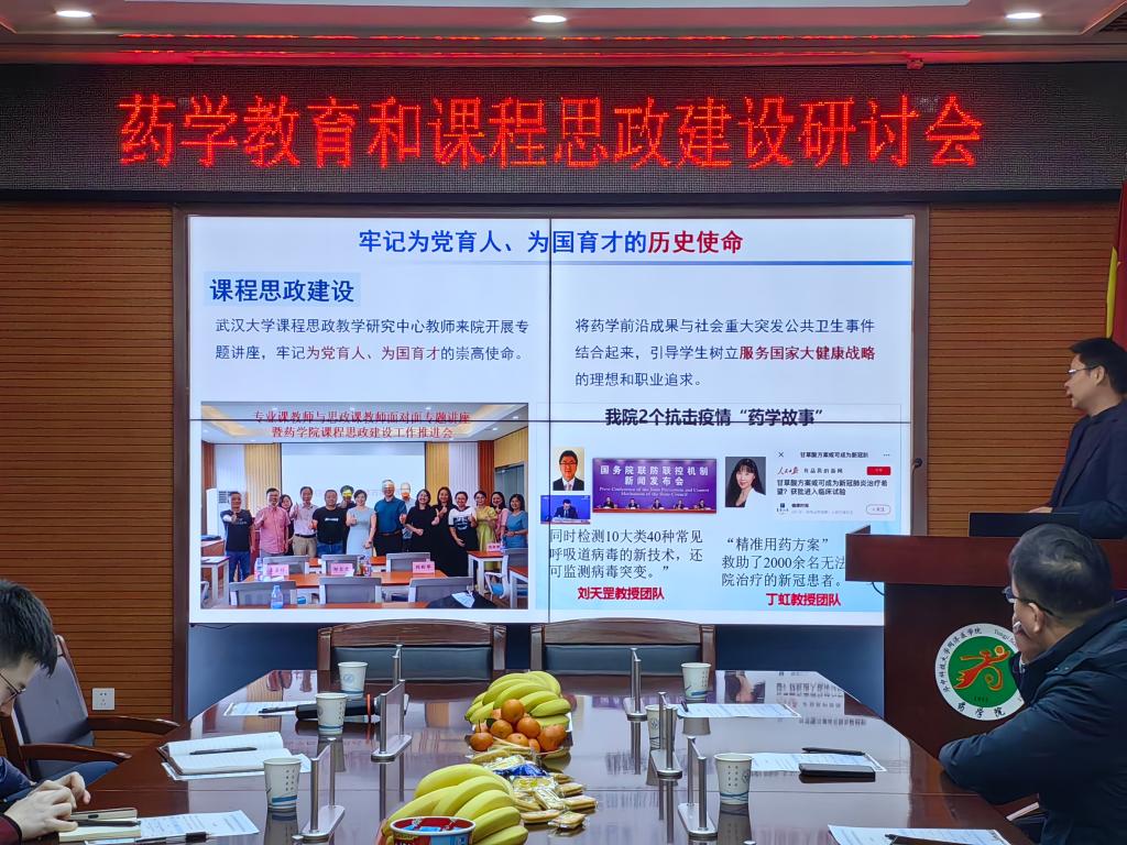 12月15日,由武汉药学会第三届药学教育专业委员会联合华中科技大学同济医学院药学院、武汉大学药学院、湖北中医药大学中药炮制学科举办的“药学教育和课程思政建设研讨会”在华中科技大学同济医学院药学院召开。会议邀请了武汉大学陈文青教授、湖北中医药大学曹国胜副教授、华中科技大学杨丛莲和孟令奎副教授围绕药学教育和课程思政建设分享经验和心得体会,由药学院院长助理徐传瑞主持,药学教育专业委员会委员和学院部分教师参与此次研讨。