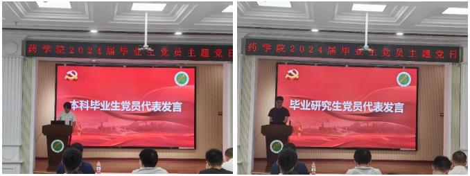张勇慧院长勉励毕业生党员成为药学科学家,承担起时代赋予药学人的使命,努力锤炼自身本领,积极献身于生物医药产业,在新时代新征程上赢得更大荣光,让党的旗帜高高飘扬。相信这堂精彩的“最后一课”,会使让全体毕业生党员更深刻地认识到自身肩负的使命和责任,赓续荣光,奋勇前行。