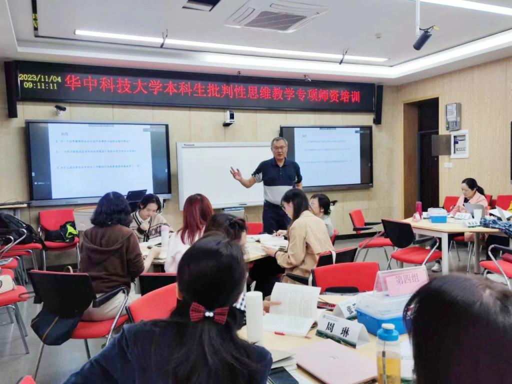 董毓(中)为华中科技大学培训大学生批判性思维课程师资。董毓供图