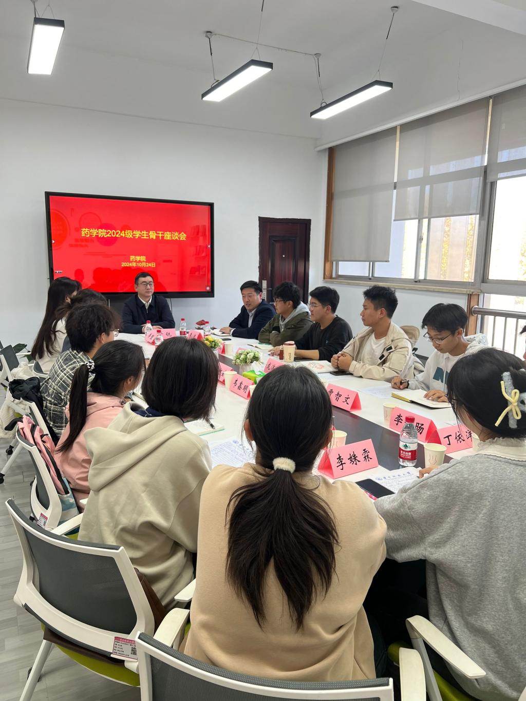 为进一步了解新生入校后的学习生活情况,加强我院学生干部队伍建设,增强学生干部责任意识和服务意识,提升班级凝聚力,10月24日下午,药学院在大学生活动中心618室召开了学生干部代表座谈会。学院党委书记黄锐、党委副书记李进、新生辅导员李堃、医科一年级办公室辅导员闫颢芯以及24级学生干部代表参加了会议。