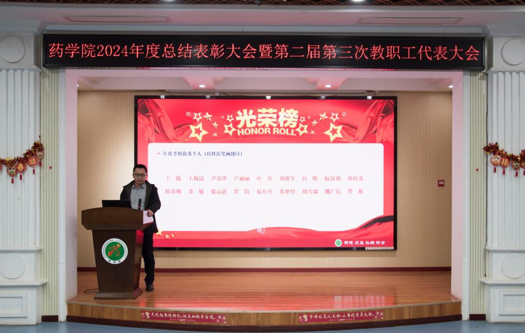 1月20日下午,药学院2024年度总结表彰大会暨第二届第三次教职工代表大会在药学院五楼大会议室召开。