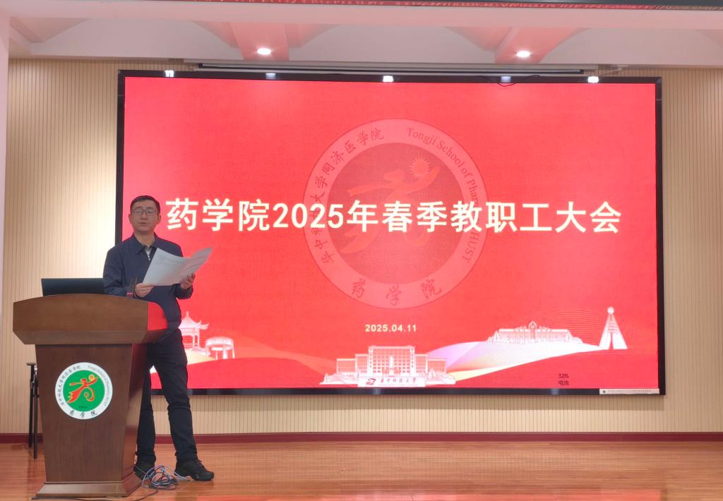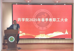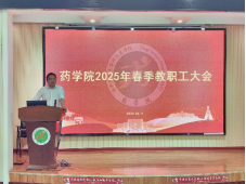 4月11日下午,药学院在五楼大会议室召开2025年春季教职工大会,院领导班子及全院教职工参加会议,党委副书记、纪委书记李进主持会议。