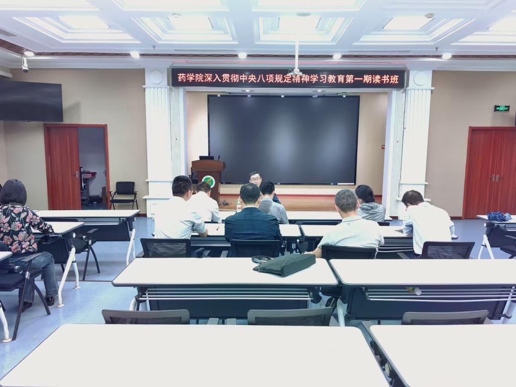4月11日,药学院党委理论学习中心组开展深入贯彻中央八项规定精神第一期读书班学习。读书班由党委书记黄锐主持。