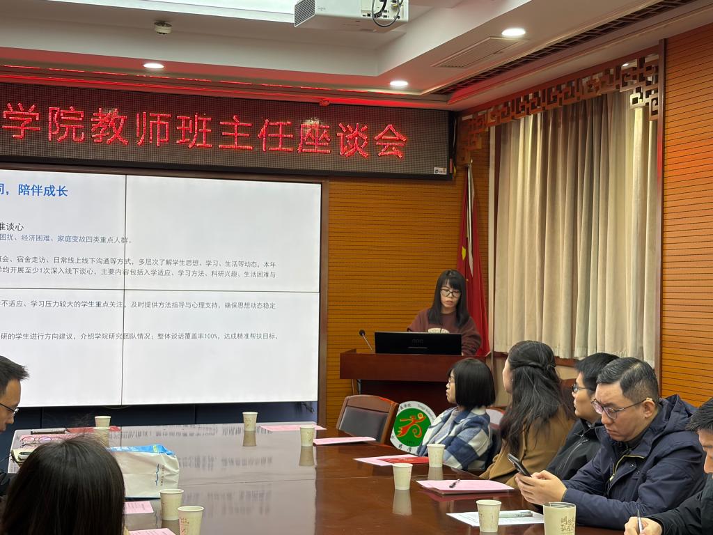 在自由交流环节,全体班主任围绕“如何提升学业困难学生帮扶实效”“怎样更好用自己的科研加持班主任工作”“如何加强与家长的协同育人”等重点难点问题展开热烈讨论。大家结合自身工作中的困惑与经验,各抒己见、建言献策,现场氛围活跃。