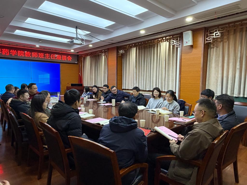 为深入总结教师班主任工作经验,系统推广育人优秀实践,进一步提升班主任队伍专业化水平与育人实效,构建“全员、全过程、全方位”育人新格局,药学院于2025年12月10日召开2025年教师班主任工作总结交流会。药学院党委书记黄锐、党委副书记李进出席会议,全体教师班主任及专职辅导员参会,会议由党委副书记李进主持。