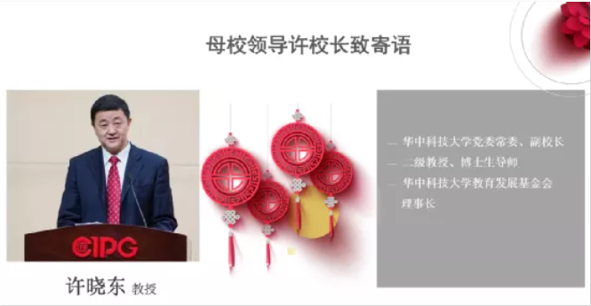 华中科技大学党委常委、副校长许晓东教授代表校领导及校友总会作了重要讲话。