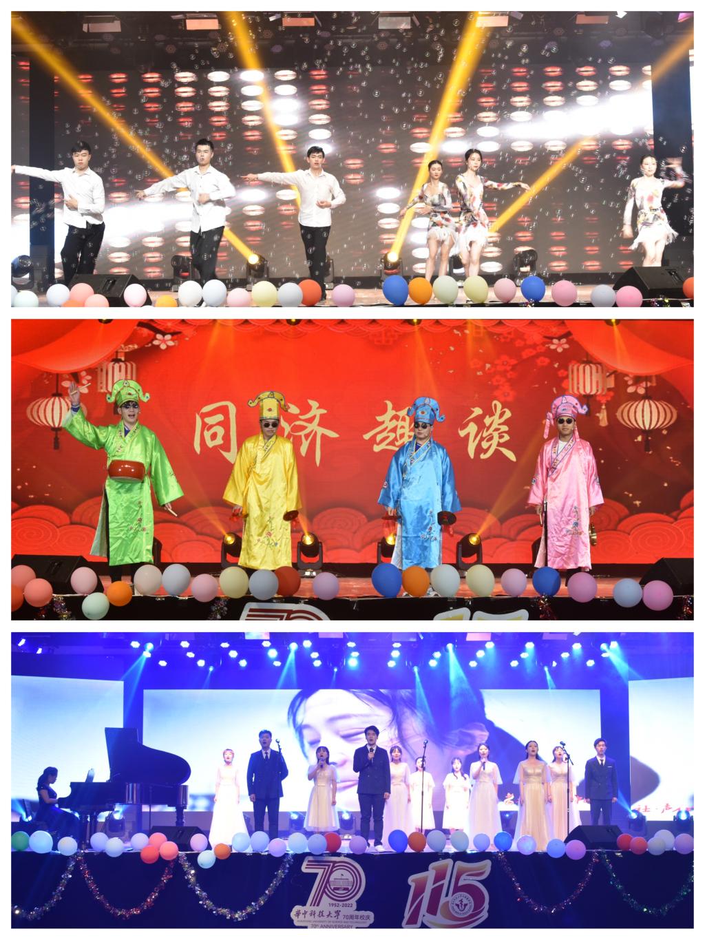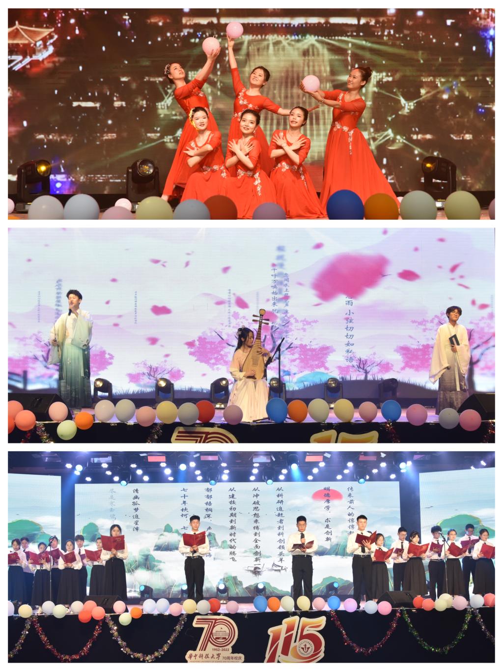 从1952年的华中工学院,陟遐自迩成长为2022年的华中科技大学,70载的年华,阅尽桃李风光;从1907年的德文医学堂,历经风雨走到2022年的同济医学院,115载的光阴,沉淀杏林芬芳。二十六载青春颂,是华中大同济药学人不懈拼搏的青春见证;二十六载青春颂,是我们踔厉奋发,笃行不怠,书写青春篇章的起跑点。晚会用最美的歌声与优美的舞步,深情献礼校庆和医学院院庆。展望未来,征途漫漫,同济药学人将用实际行动喜迎二十大,永远跟党走,奋进新征程!(文/谢可意 图/张智勇)