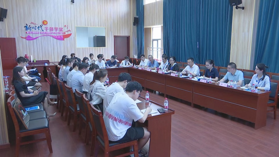 在蕲春县委副县级领导、三级调研员叶瑞华简要介绍蕲春县后,李进书记发表讲话,表示暑期实践团队之行践行“二十大”创新精神,并感谢蕲春县热情招待,也热烈欢迎蕲春县人员前往药学院交流合作。合作交流座谈会中,袁琴、叶瑞华与同学们进行了亲切的访谈交流。
