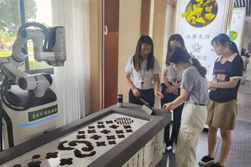 下午实践团队到达李时珍中医药大健康产业园,产业园占地面积400亩,项目总投资10亿元,拟打造成为全产业链、高科技、城乡产业一体化的大健康产业园。在这里,实践团队参观了李时珍中医药展厅,看到了更齐全的各种蕲艾大健康药品、中成药、本草日化等产品,了解了艾灸机器人的设计原理和优势,并亲身体验数字智能化健康评估设备。
