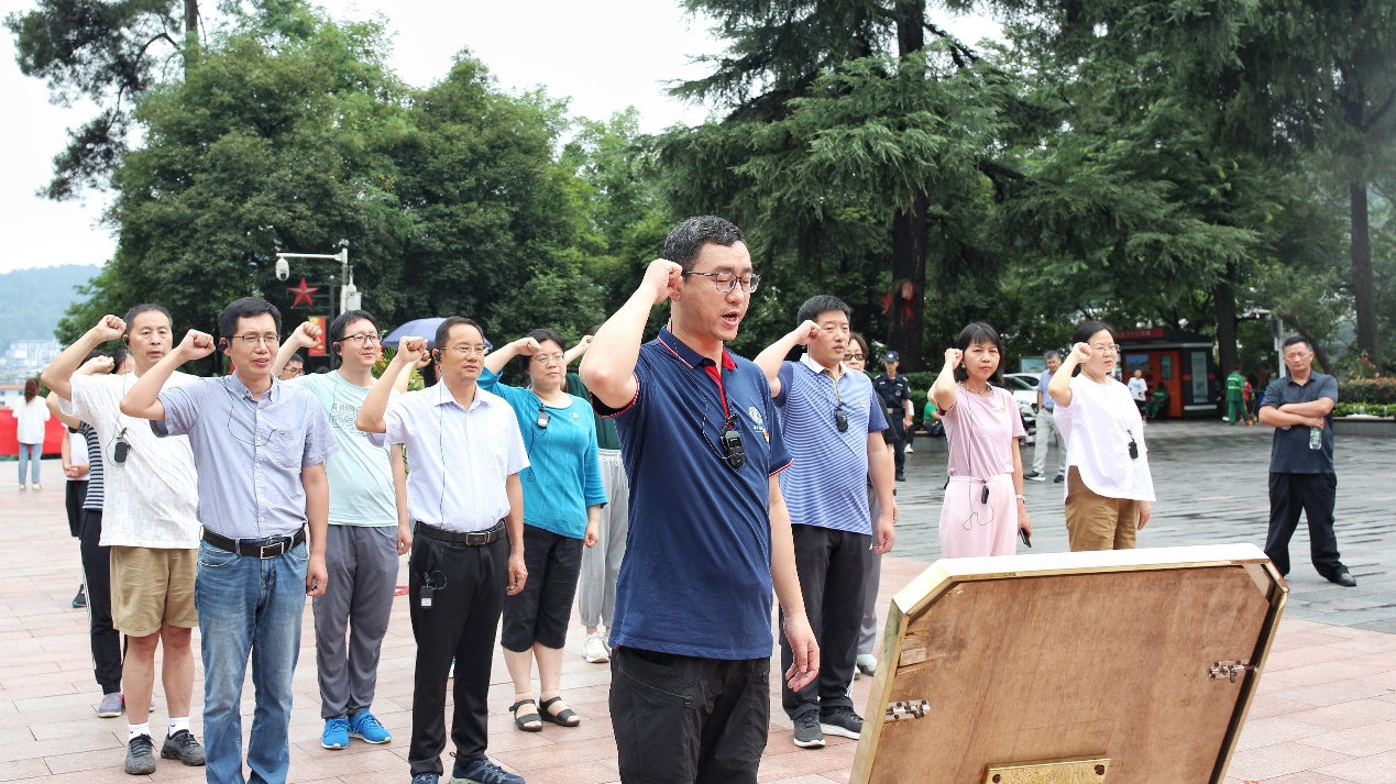 下午,学员们前往红军山烈士陵园,向革命先烈敬献花篮、缅怀革命先烈。“我志愿加入中国共产党,拥护党的纲领,遵守党的章程,履行党员义务,执行党的决定,严守党的纪律,保守党的秘密……”面对红军烈士纪念碑,副院长黄锐带领全体党员高擎右手、庄严宣誓,重温入党誓词。