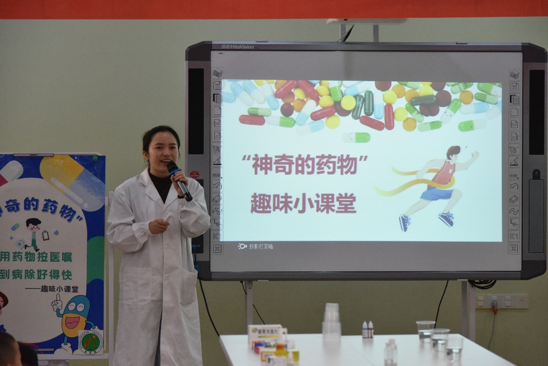 为帮助儿童了解药物的基本知识,提高用药安全意识,培养健康的生活方式,2023年11月23日下午,华中科技大学同济医学院药学院“医博团”志愿服务队来到同济医学院附属幼儿园,为大班小朋友们带来了一堂有生动有趣的“神奇的药物”主题课。同济医学院附属幼儿园园长刘新、副园长刘敏、保教主任钱芳、大班全体教师,药学院工会副主席叶茂、研究生辅导员张心语出席活动。